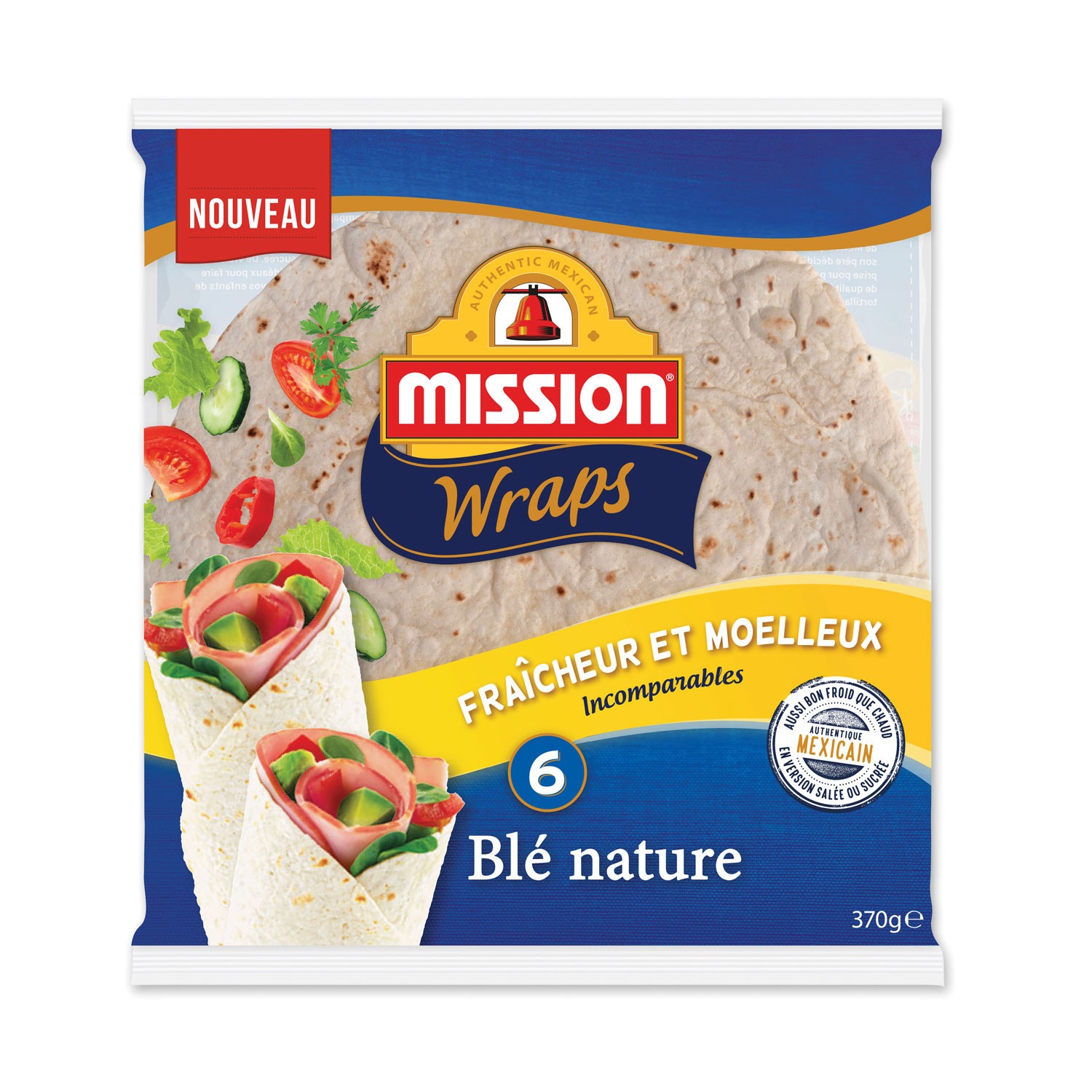Mission Wraps Epeautre et Avoine.Ingrédients : farine de froment, eau, farine complète d'épeautre (6,2%), flocons d'avoine (3%), germes de blé (39%), huile de colza, stabilisants...