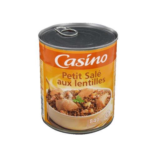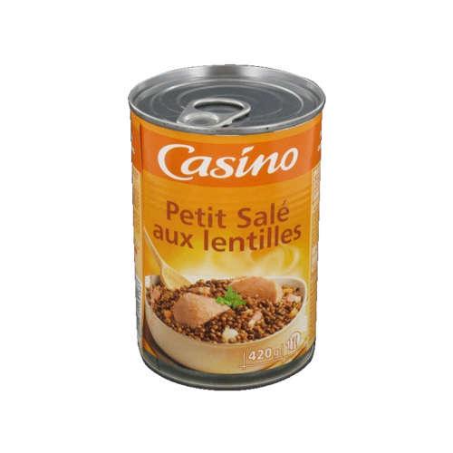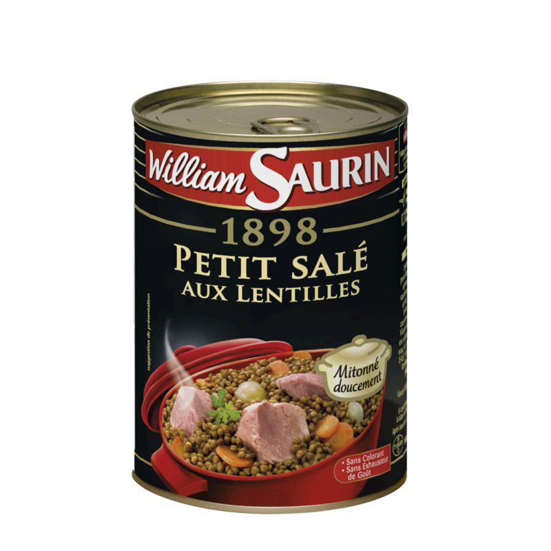 Petit salé cuisiné aux lentilles à la graisse de canard. Ingrédients : Eau - lentilles réhydratées 34%, - viande de porc traitée en salaison et...