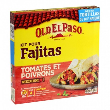 Kit pour Fajitas.Ingrédients : Tortillas de blé souples Salsa (326 g) : Farine de blé (57%), eau, stabilisant : glycérol, huile végétale, assaisonnement « salsa...