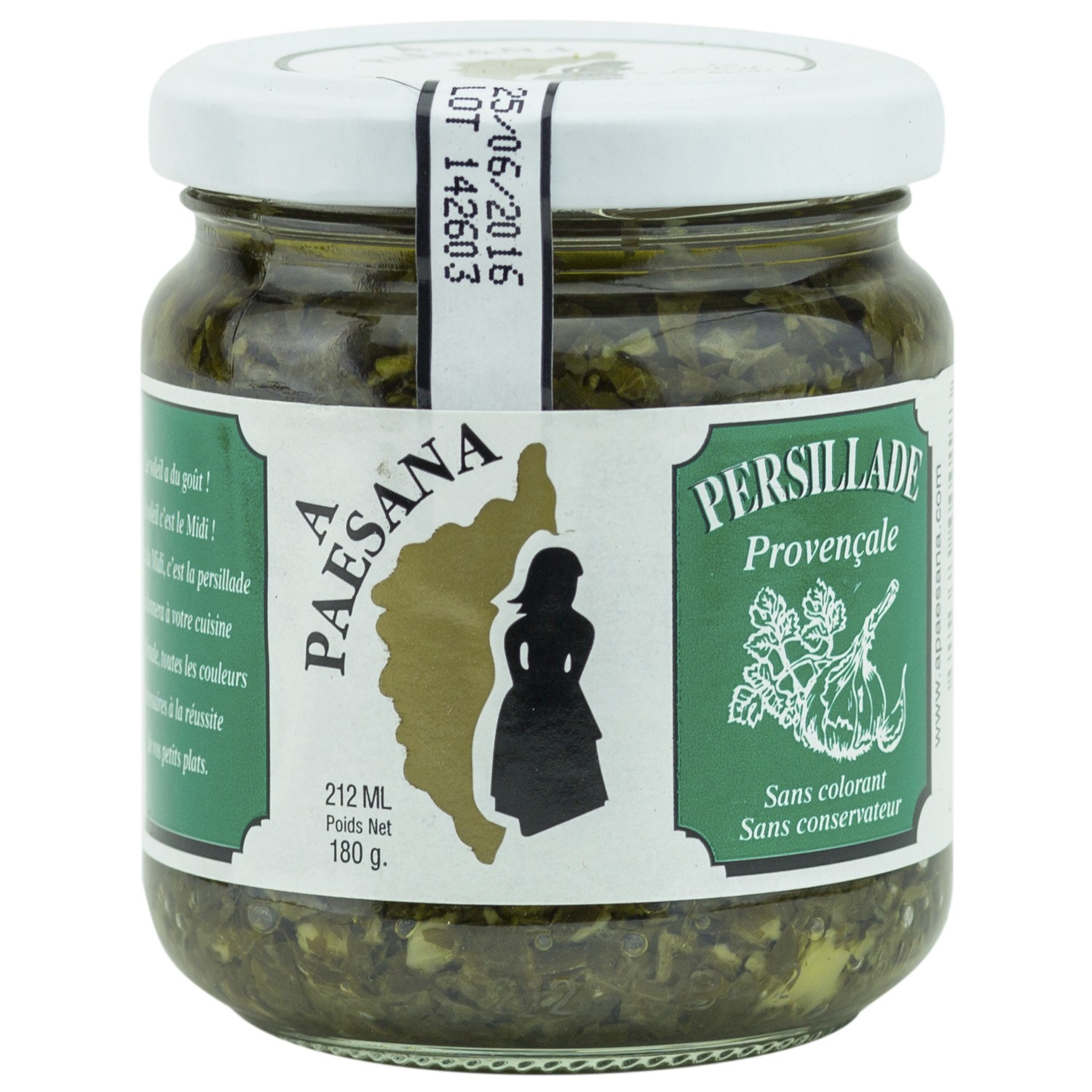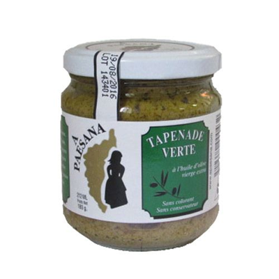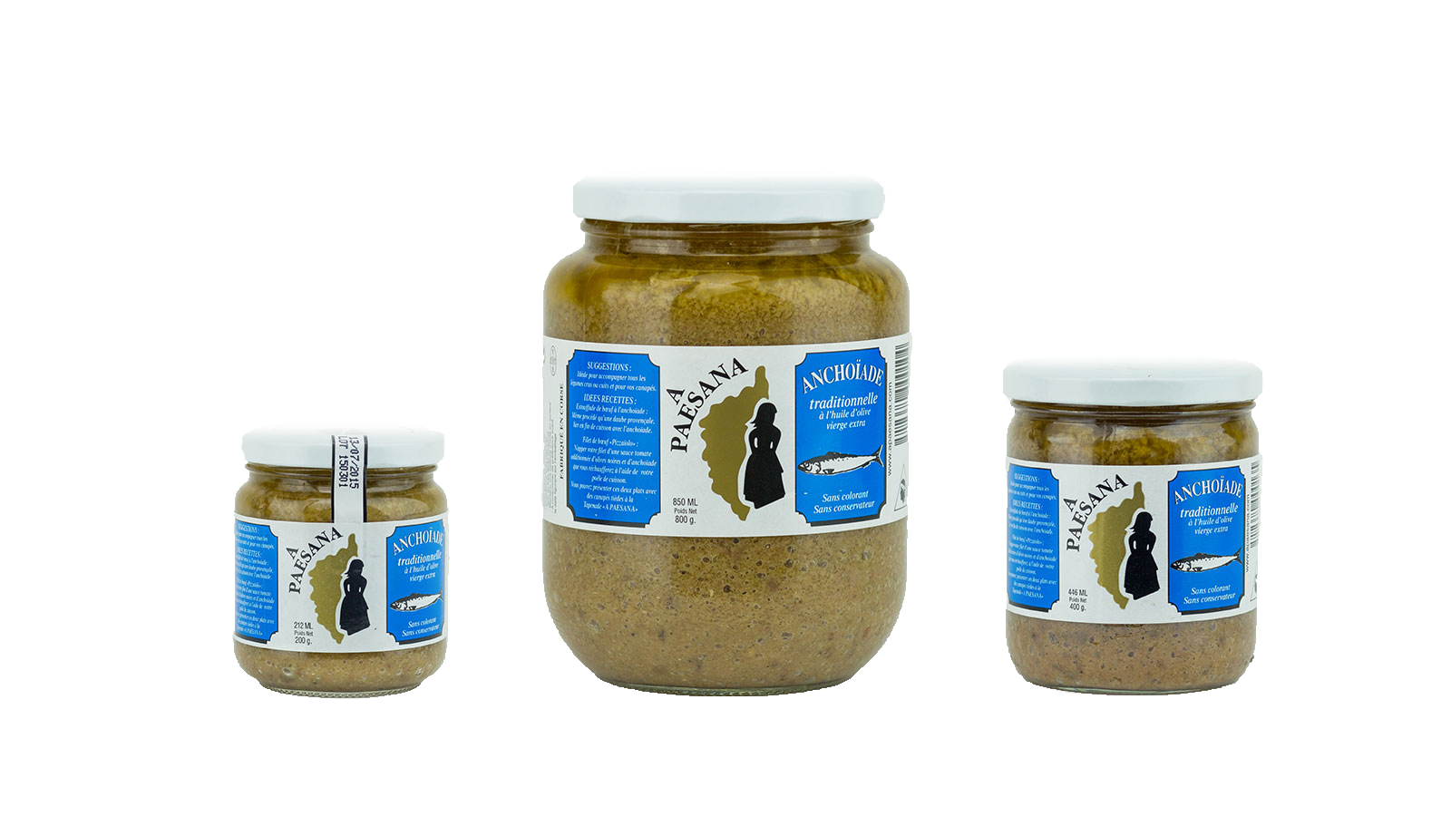 Anchoiade 200G Paesana ( Corse ).Ingrédients : Anchois (59%) (Pois: son), huile de tournesol (17%), huile d'olive vierge extra (9%), jus de citron (8%), ail...