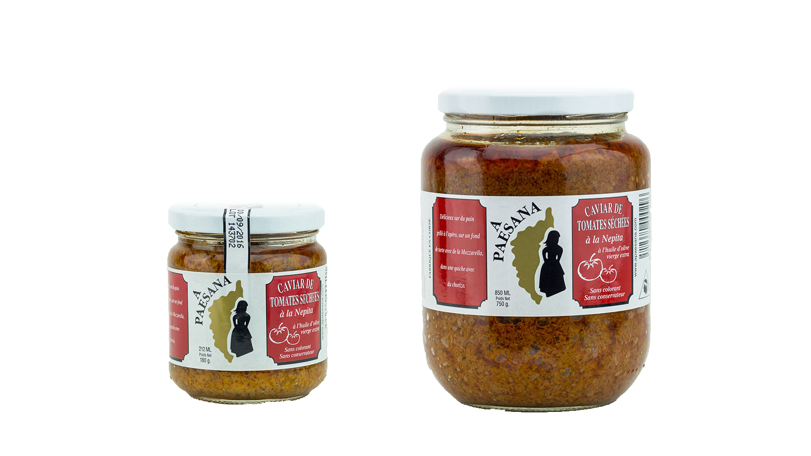 Caviar de tomates séchées à la Nepita.Ingrédients : Tomates séchées (45%), oignons ail huile d'olive vierge extra (7%), basilicMarque : A paesana