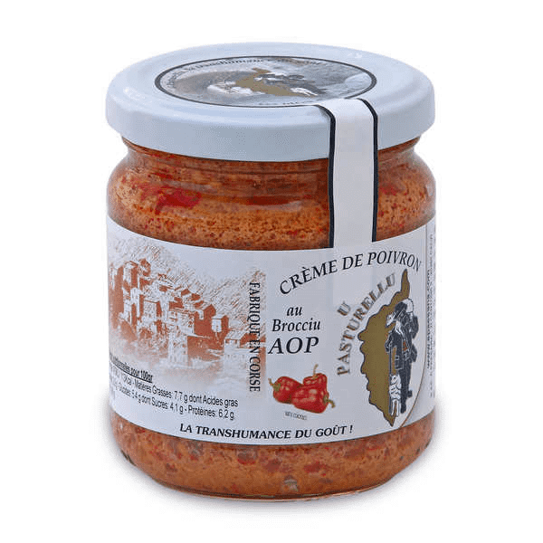 Crème de tomate au Brocciu AOP U Pasturel.Ingrédients : (22,4%), Tomates sectes (22%), R Ognon (14%), Huile d'olive vierge extra 0, Huile de Tournesol (5,6%)...
