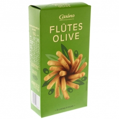 Biscuits aux olives noires.Ingrédients : Farine de _blé_ - huile d'olive 4.3% - levure - sel - olives noires 1.7% - extrait de malt d'_orge_...