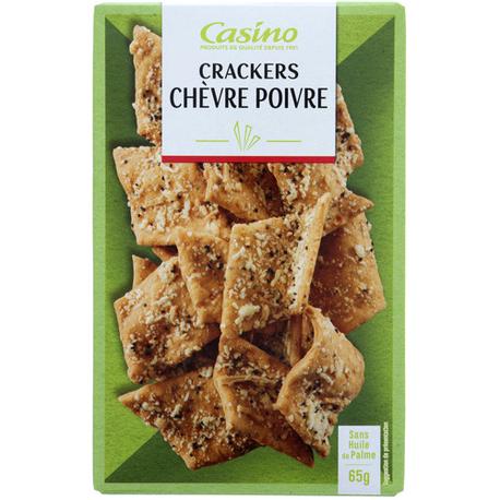 Biscuits au fromage de chèvre et au poivre.Ingrédients : Farine de _blé_ - _fromages_ 18% (_lait_ - sel - présure - ferments lactiques - colorant:...