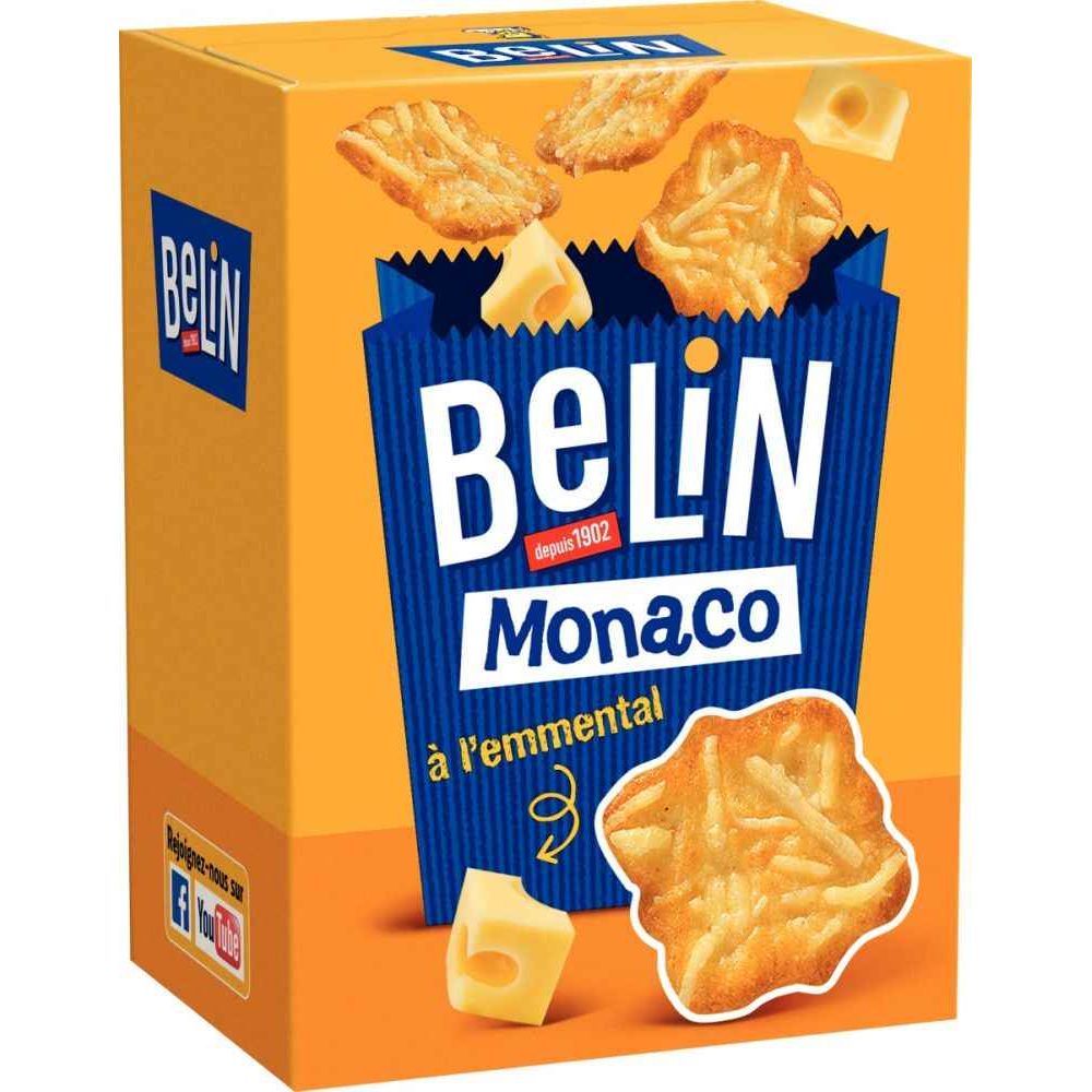 Biscuits crackers.Ingrédients : Farine de _blé_, huiles végétales (palme, colza), _emmental_ râpé séché (4 %), sucre, sirop de glucose-fructose, sel, poudre à lever (carbonate acide...