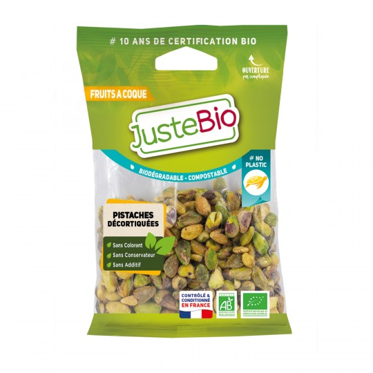 Pistaches Segotiguees,.Ingrédients : PISTACHES décortiquées*Quantité : 100 gMarque : Bio