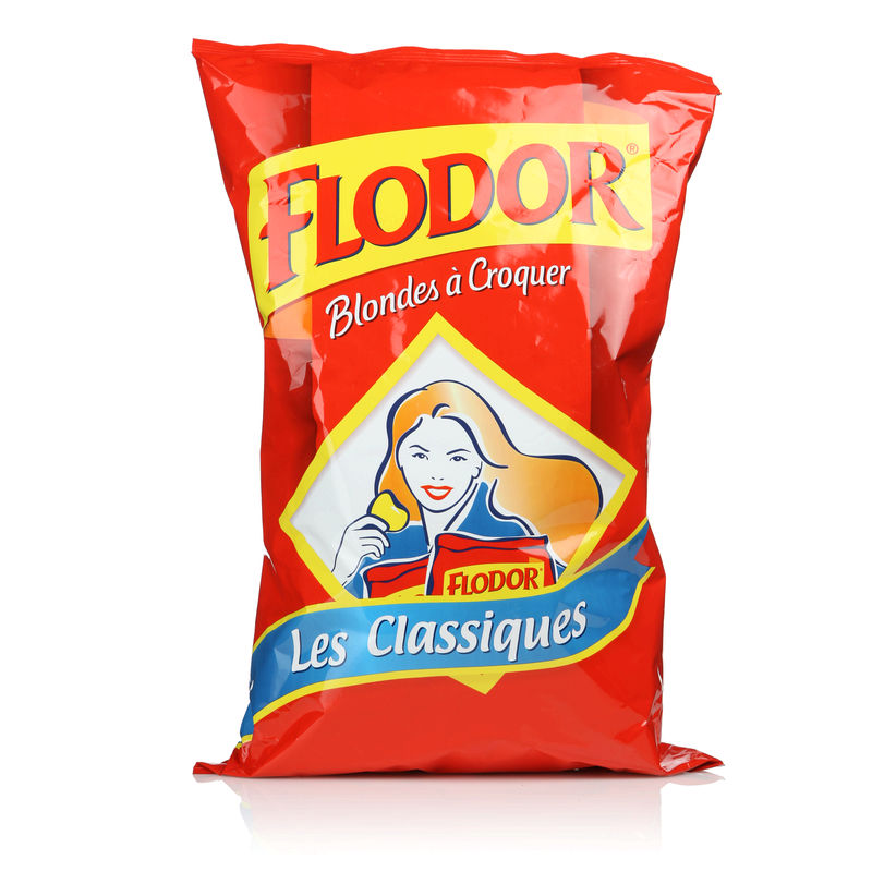 Chips.Ingrédients : Pommes de terre, huiles végétales (palme et tournesol), sel iodé (1.3 %).Quantité : 150 g eMarque : Flodor