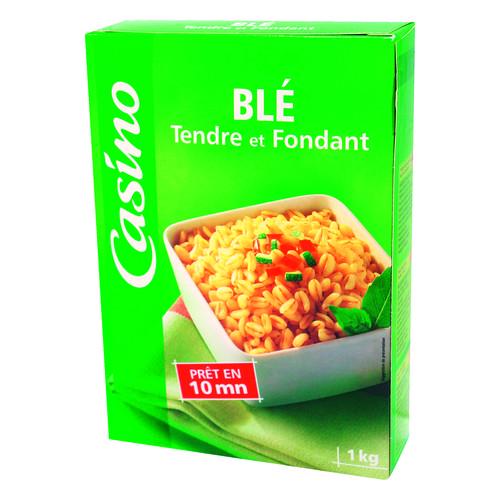 Grains de blé dur précuits. Ingrédients : Grains de _blé_ dur précuits. Quantité : 1 kg Marque : Casino