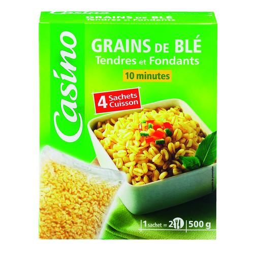 Grains de blé dur précuits. Ingrédients : Grains de _blé_ dur précuits. Quantité : 4 x 125 g Marque : Casino