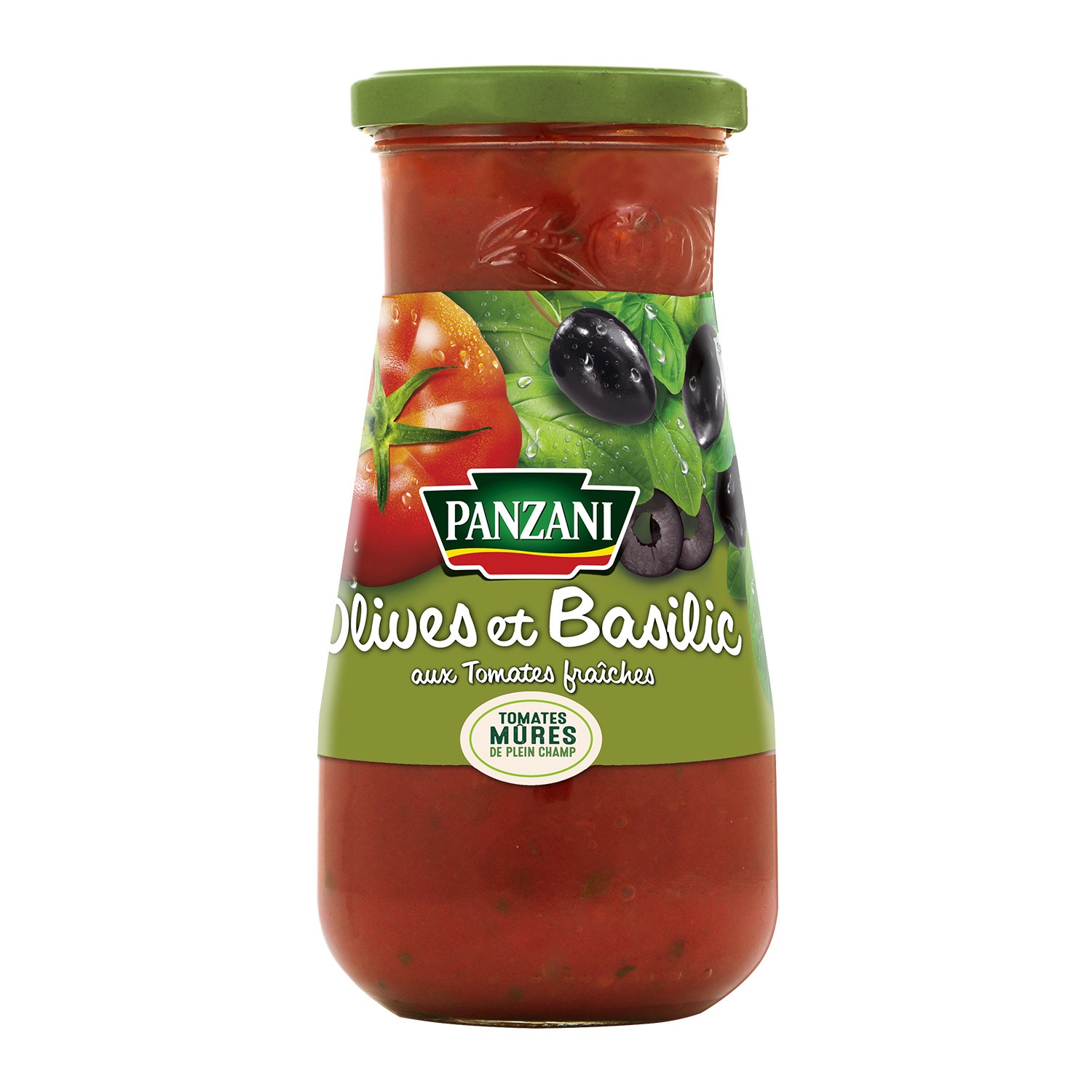 Sauce tomate olives et basilic. Ingrédients : Pulpe de tomates avec morceaux et concentré de tomate (75%), eau, olives 8%, oignons frais, huile de tournesol,...