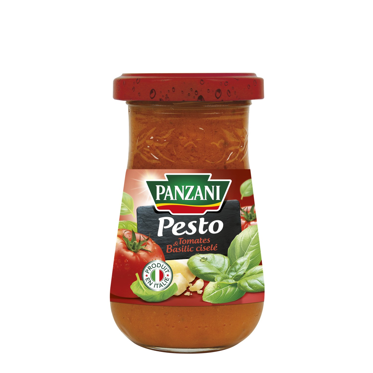 Pesto tomates et basilic ciselé. Ingrédients : Pulpe de tomates avec morceaux et concentré de tomates 47%, huile de tournesol 23%, sirop de glucose, eau,...