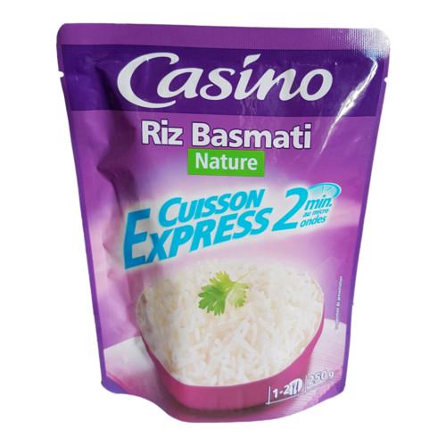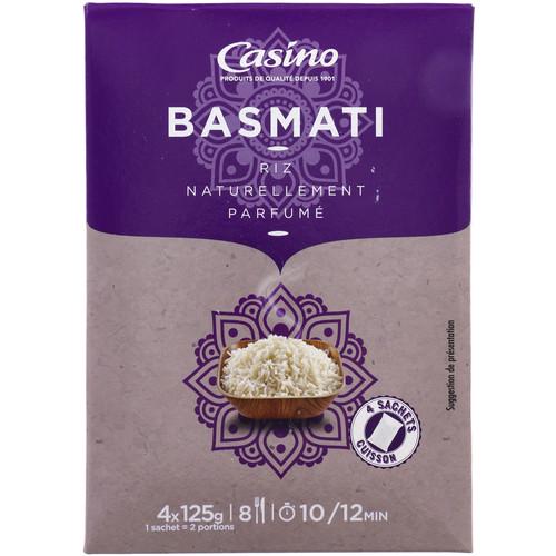 Riz basmati long grain de qualité supérieure. Ingrédients : Riz Basmati long grain de qualité supérieure Quantité : 4 x 125 g Marque : Casino...
