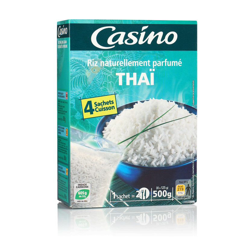 Riz Thaï long grain de qualité supérieure. Ingrédients : Riz Thai long grain de qualité supérieure Quantité : 4 x 125 g Marque : Casino...
