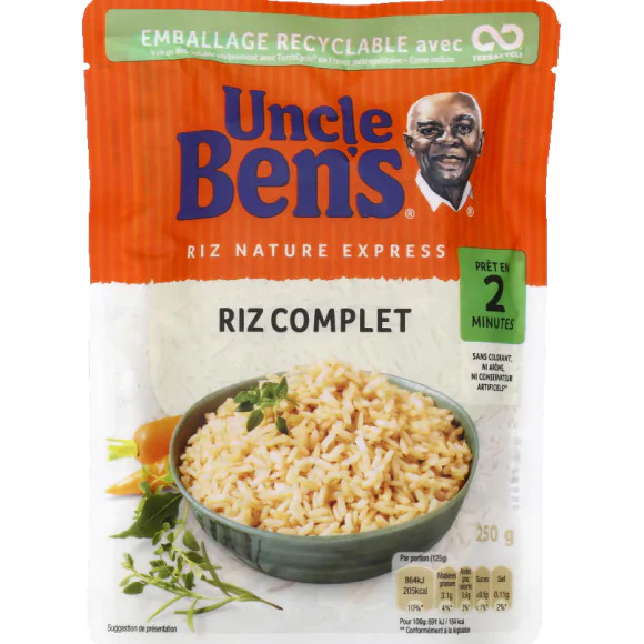 Riz Complet Nature Express. Ingrédients : Riz complet précuit à la vapeur (98%), huile de tournesol, sel Quantité : 250 g Marque : Uncle Ben's...
