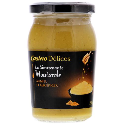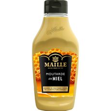 Moutarde au miel et aux épices.Ingrédients : Eau - vinaigre d'alcool - sucre - graines de _moutarde_ - miel destiné à l'industrie 8% - sel...