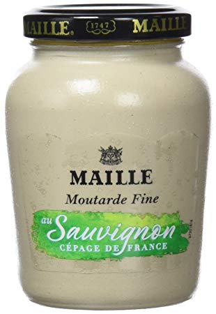Moutarde Fine au Sauvignon.Ingrédients : Eau, graines de MOUTARDE, vinaigre d'alcool, vin blanc Sauvignon 16 %, sel, farine de MOUTARDE, sucre, jus de citron concentré,...