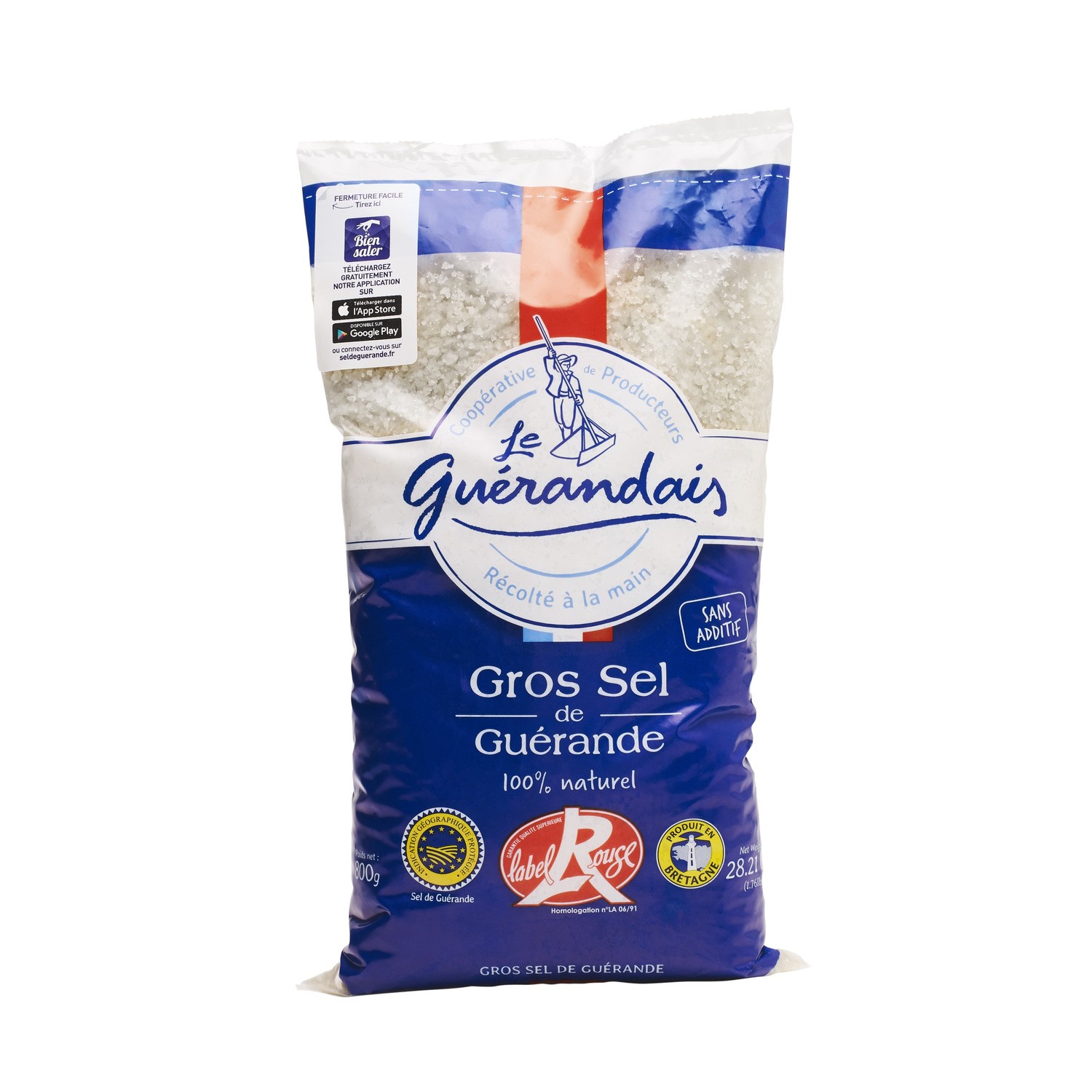 Gros sel de Guérande.Ingrédients : 100% sel de Guérande.Quantité : 800 gMarque : le GuerandaisOrigine : France