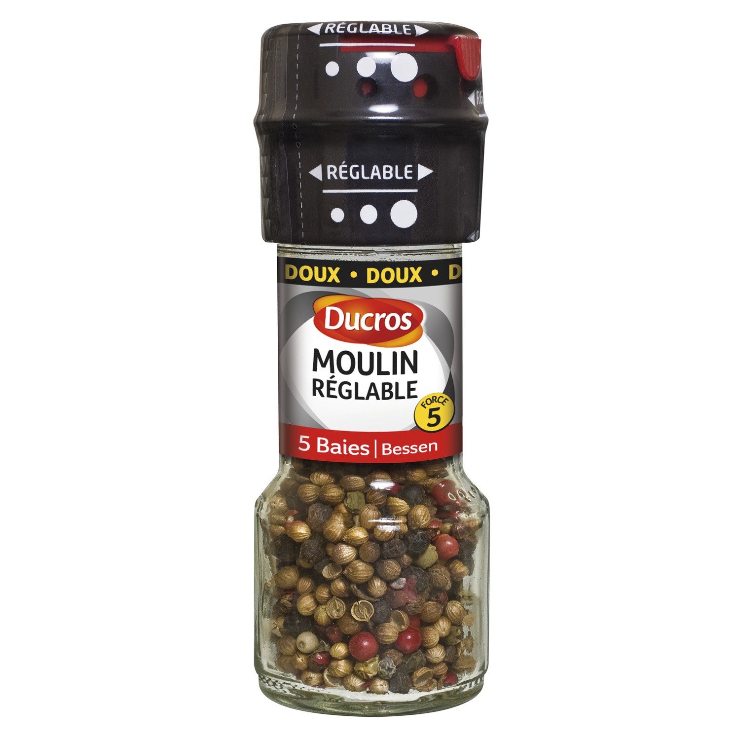 Poivre doux 5 baies.Ingrédients : et d'épices / t noir, graines de coriandre, baies Our utiliser votre Moulin : Faites glisserle moyen middelmatiQuantité : 24gMarque...