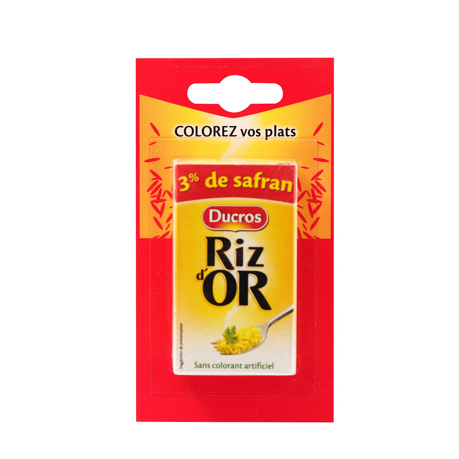 Assaisonnement à base d'épices pour riz et paella.Ingrédients : Mélange d'épices (curcuma, paprika, gingembre, safran (3 %), poivre noir, graine de coriandre, piment de la...