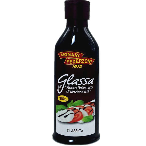 Vinaigre Balsamique.Ingrédients : Jus de raisin concentré, Aceto Balsamico di Modena IGP 35% (vinaigre de vin, moût de raisin concentré, colorant E 150d), Sirop de...