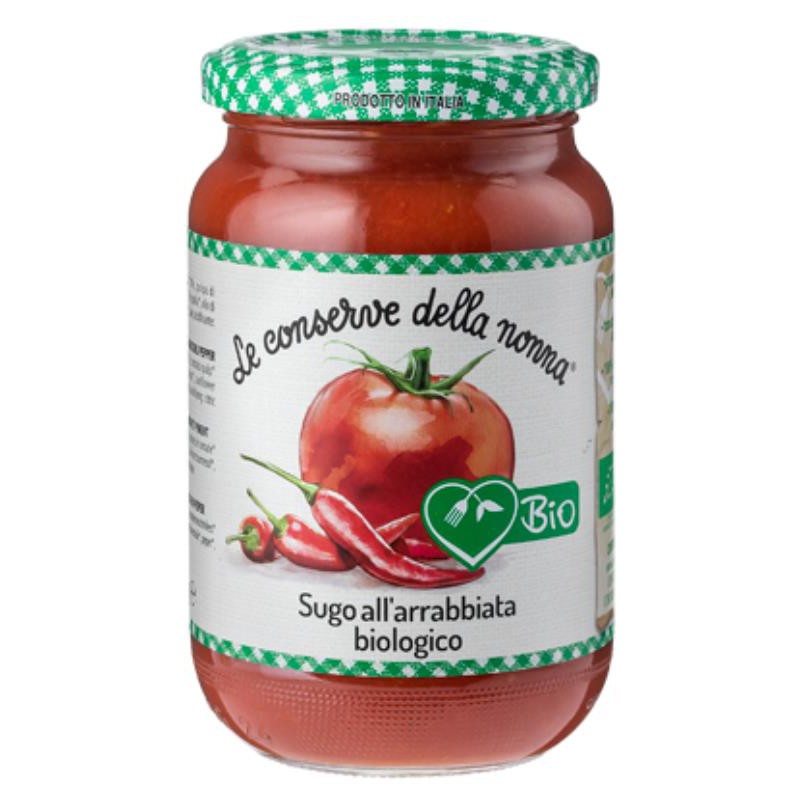 Le Conserve Della Nonna Arrabbiata Sauce (gluten Free). Ingrédients : Tomato* 70%, tomato pulp* 20%, chili 4%' Onion*, sunflower seeds oil*, ' acidifying: citicacidÇ*0rganic SAUCE...