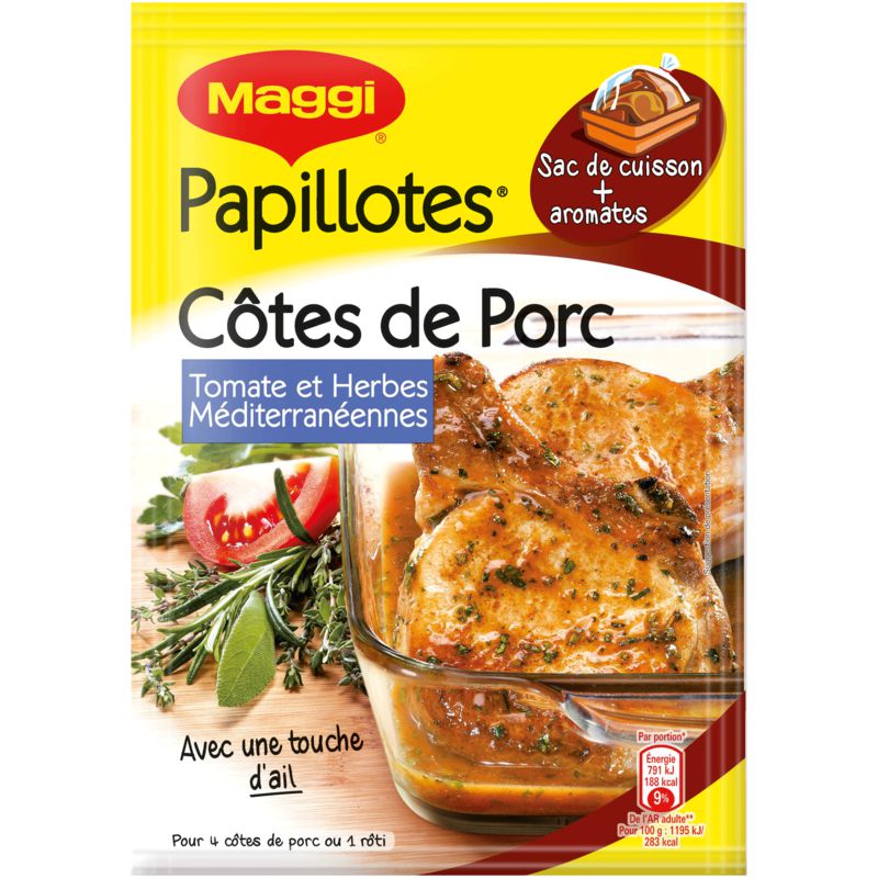 papillotes. Ingrédients : Légumes (pommes de terre, tomate, oignon 5,4%, panais), fécule de maïs, sel, herbes de Provence 9% : origan, basilic, marjolaine, thym ;...