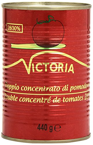 Double concentré de tomates. Ingrédients : tomate, sel Quantité : 140 g Marque : Victoria