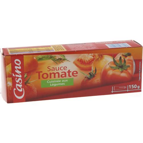 Sauce tomate aux légumes. Ingrédients : Purée de tomates concentrée 44,7% - eau - légumes : 10% (oignons 50% - purée de carottes 50%) -...
