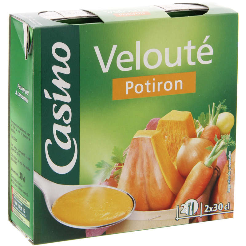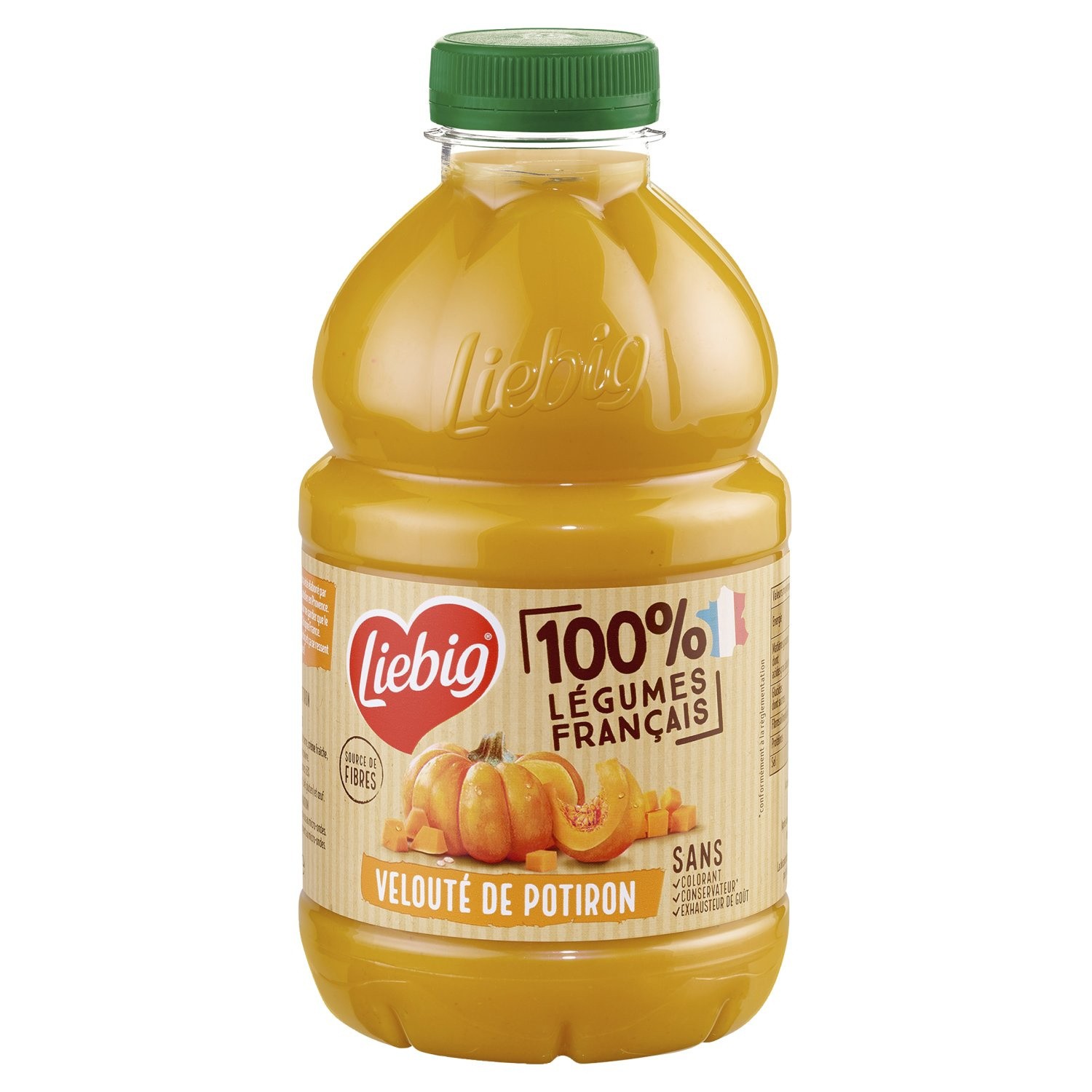 Velouté de Potiron.Ingrédients : Eau, potiron 31%, carotte, pomme de terre, crème fraîche, sel, extrait naturel de poivre.Quantité : 750mlMarque : LiebigOrigine : France