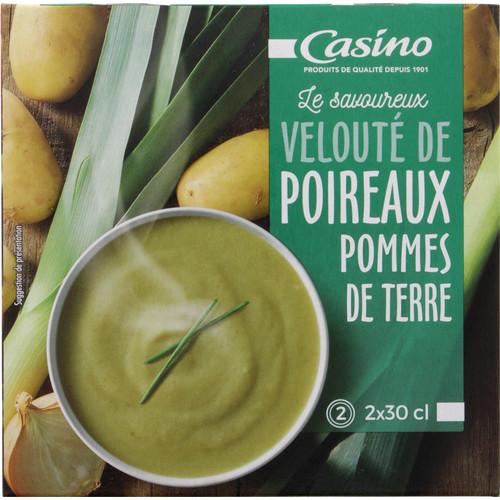 Velouté de Poireaux Pommes de Terre.Ingrédients : Eau, poireau 37%, pomme de terre 17%, oignon, épinard, sel, crème fraiche, beurre de cuisine, huile de colza,...