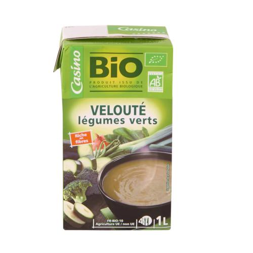 Velouté de légumes et légumes verts, issu de l'agriculture biologique - Potage prêt à consommer.Ingrédients : Eau - courgettes* 13,4% - brocolis* 9,7% - oignons*...
