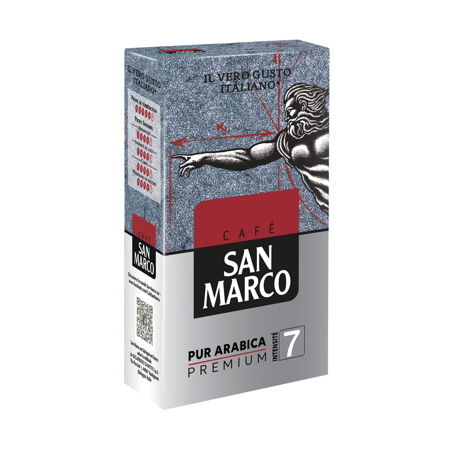 Café San Marco pur arabica.Ingrédients : Café moulu pur arabicaQuantité : 250 gMarque : San Marco