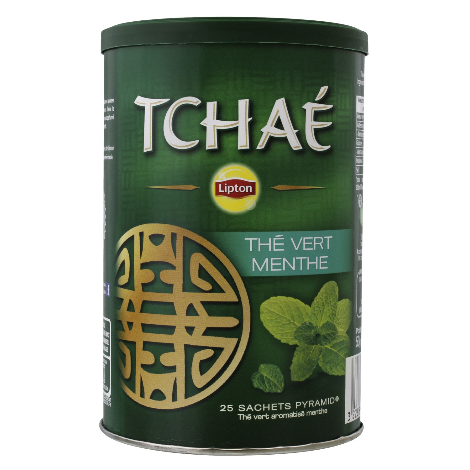 Thé vert aromatisé à la menthe.Ingrédients : thé vert, menthe (21%), arôme (15%).Quantité : 48 gMarque : Lipton
