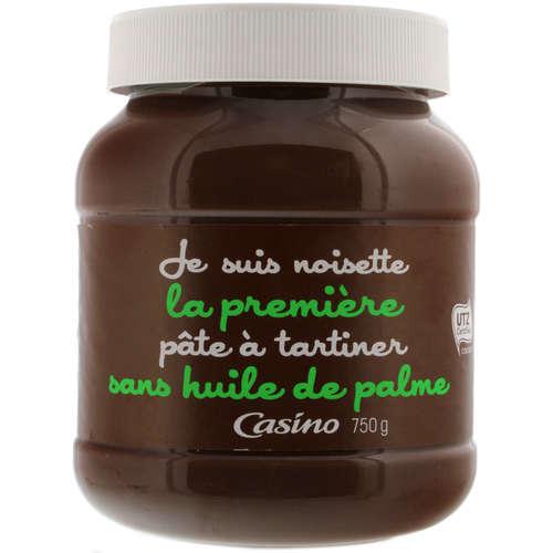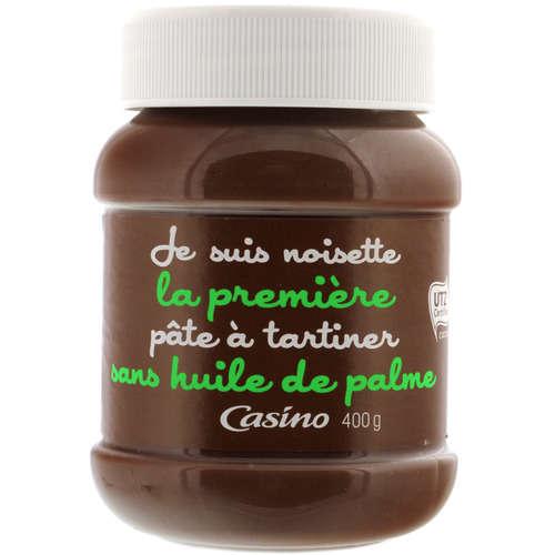 Pâte a tartiner aux noisettes et au cacao.Ingrédients : Sucre, huile de palme, noisettes 13%, lait écrémé en poudre 8,7%, cacao maigre 7,4%, émulsifiants :...