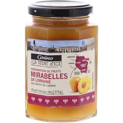 Préparation de Mirabelles de Lorraine. Ingrédients : Mirabelles de Lorraine 55% - sucre de canne - jus de citron concentré - gélifiant : pectines. Quantité...