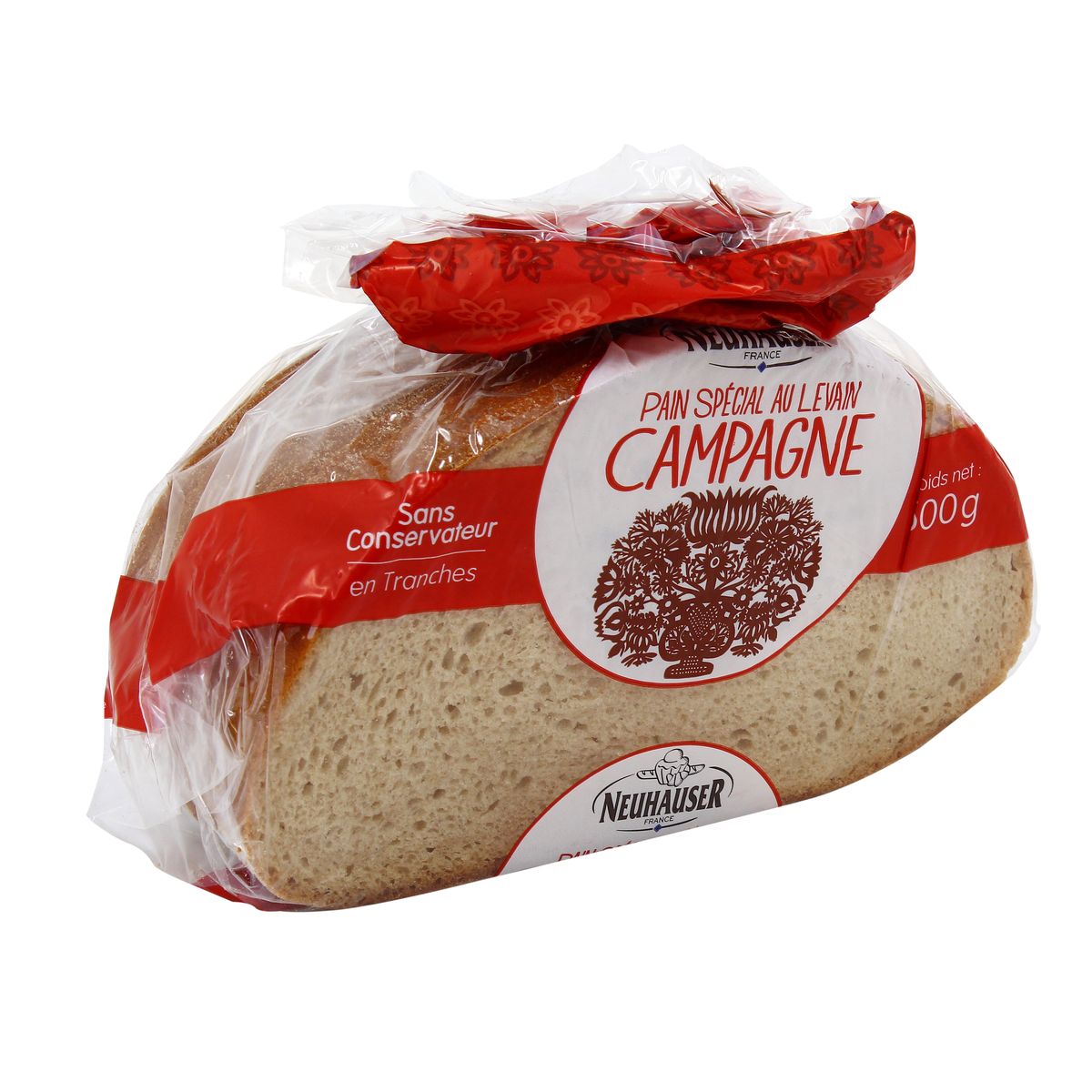 Pain spécial de campagne en tranche.Ingrédients : Farine de _froment_ 56 %, eau, levain naturel, (eau, farine de _seigle_ complet 2 %, farine de _seigle_...