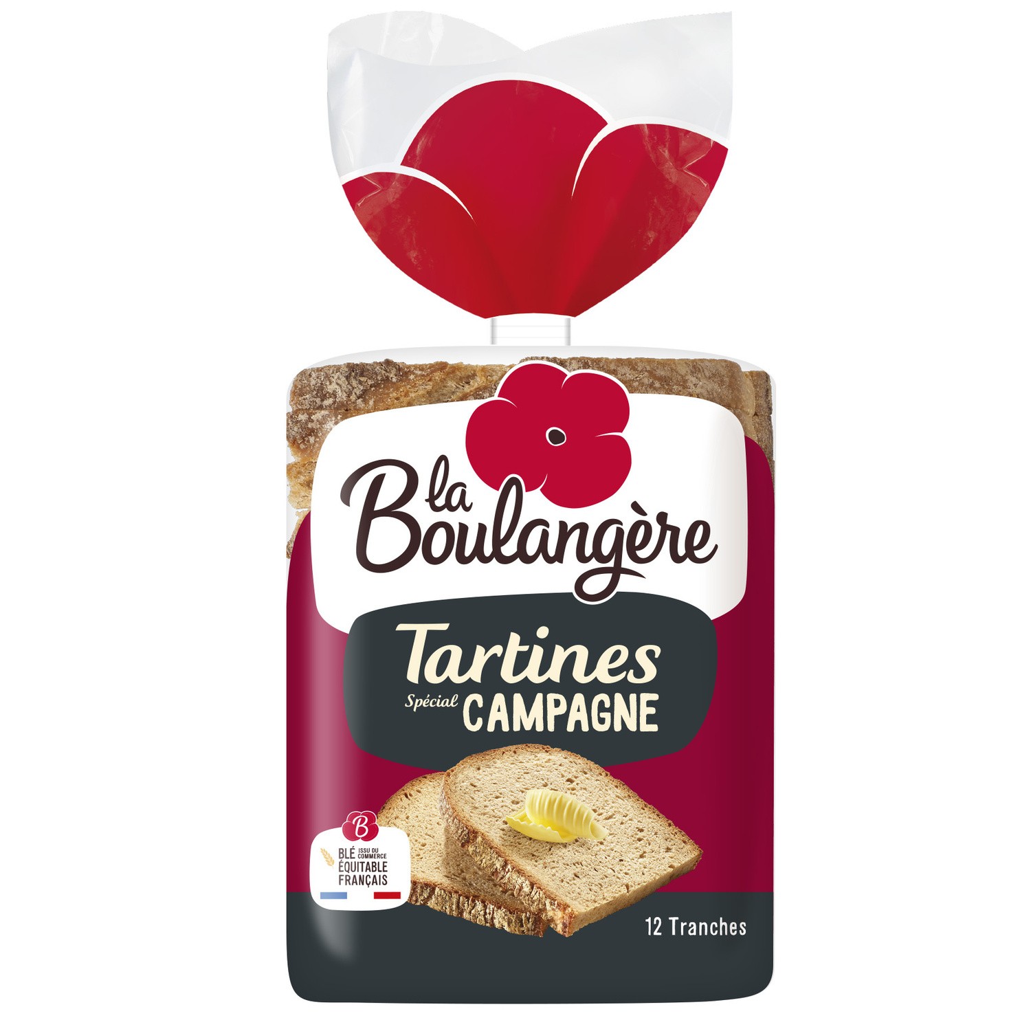 Tartines special Campagne.Ingrédients : Farine de _blé_* 55%, eau, huile de colza, semoule de _blé_ dur, sel, levains de _blé_ dévitalisé, arôme naturel (contient alcool),...