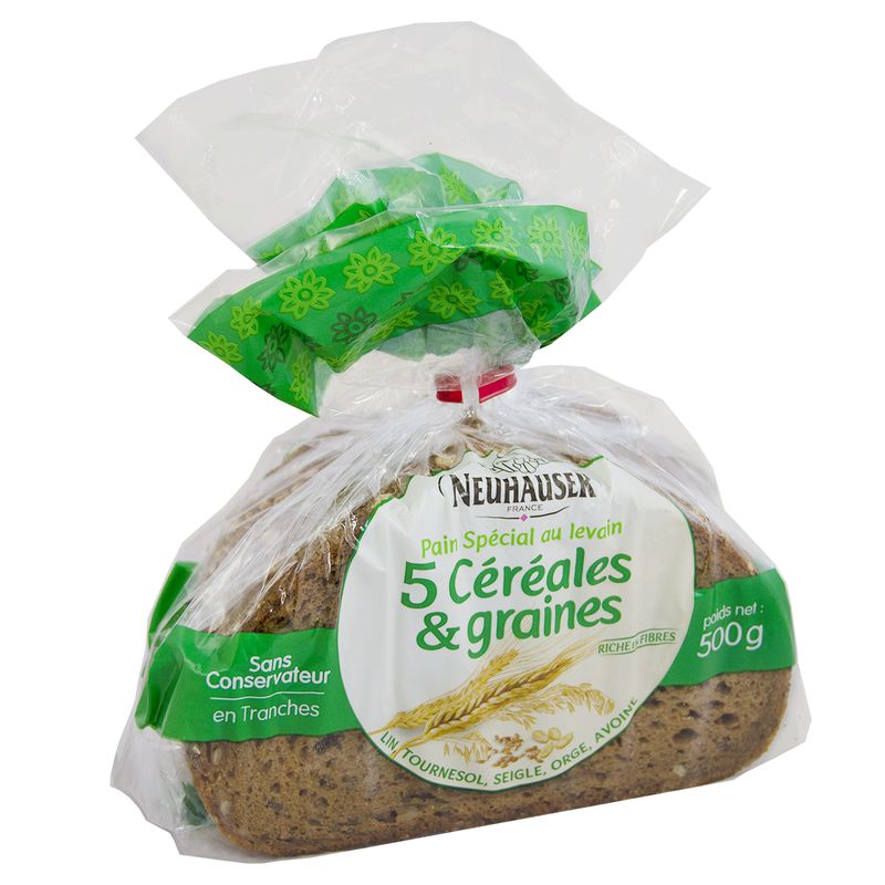Pain au levain 5 céréales &graines.Ingrédients : dov.. ose do farir (BLÉ, SEIGLE), eau, I (eau, farine de SEIGLE complète farine de SEIGLE), graines de...