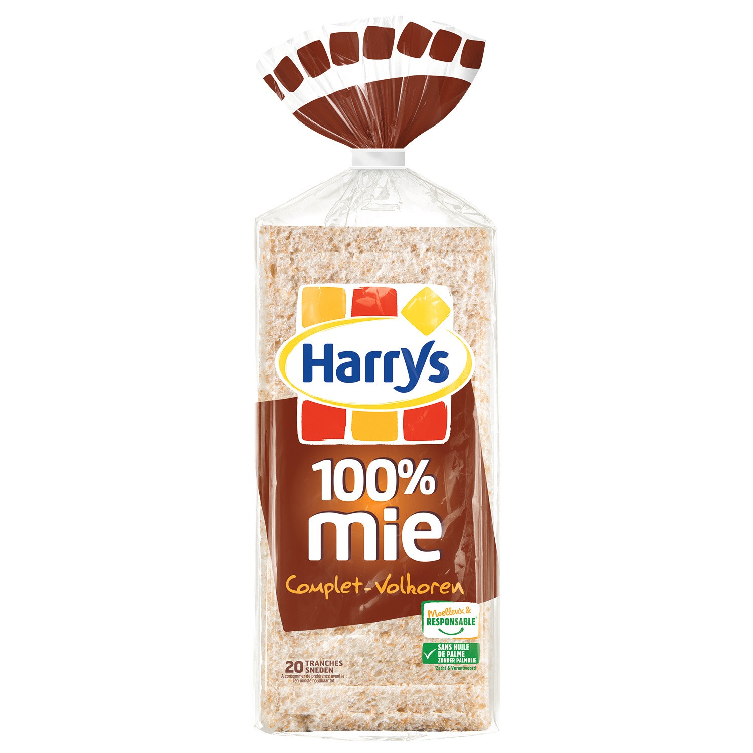 Pain 100% mie complet.Ingrédients : Farine complète de blé 37%, eau, farine de blé, huile de colza, sucre, sel, arôme (contient alcool), gluten de blé,...