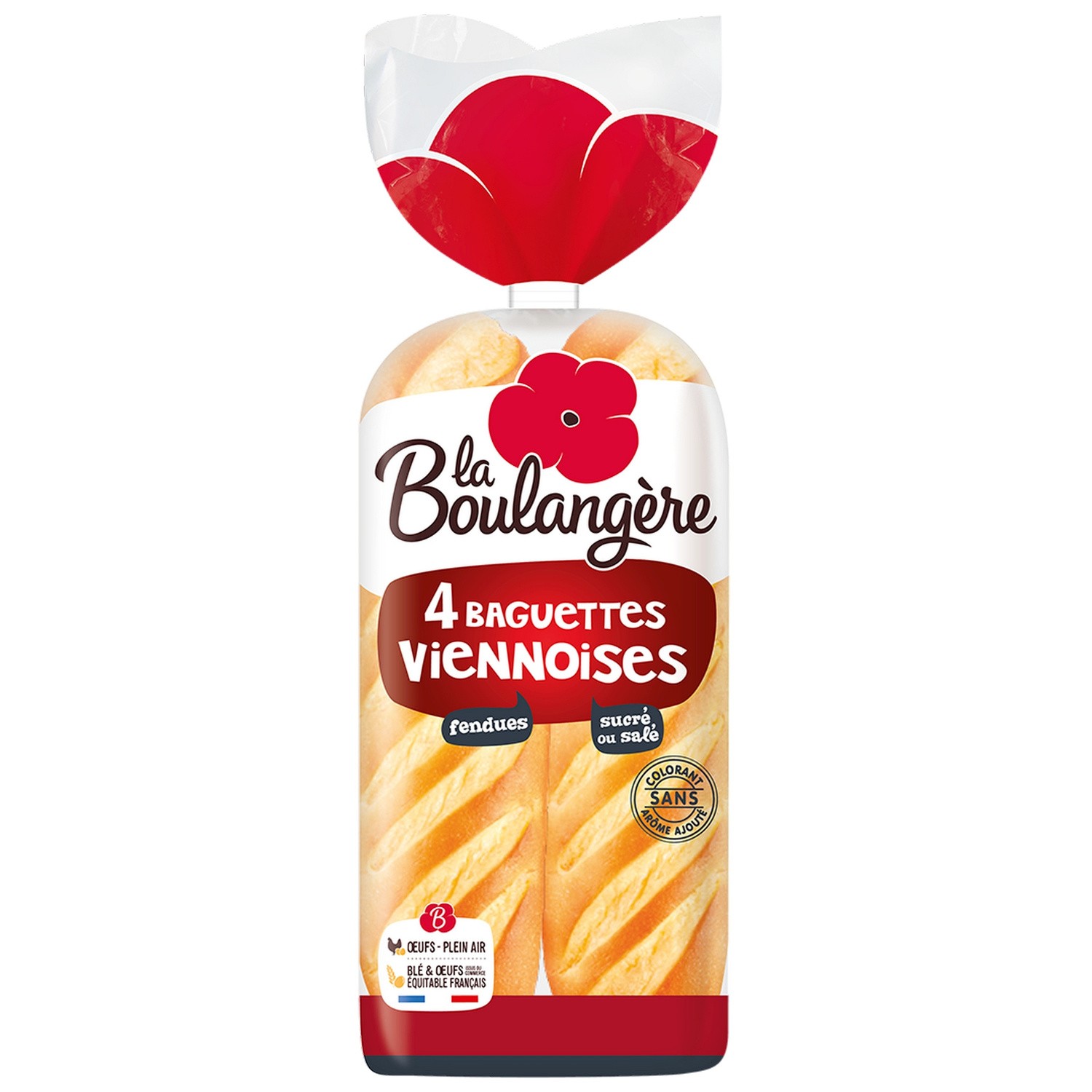 La Boulangère Baguettes viennoises le paquet de 4 340 g.Ingrédients : Farine de blé, eau, oeufs, huile de colza, sucrq Àevure, émulsifiant : E471 sel,...