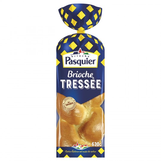 Brioche tressée au levain.Ingrédients : Farine de _blé_ 44 %, _œufs_ frais 14 %, levain 11 % (farine de _blé_ 6 %, eau, sel), sucre,...
