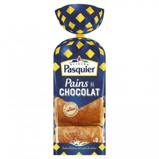 8 pains au chocolat.Ingrédients : Farine de _blé_ - huile de palme - chocolat 14% (sucre - pâte de cacao - beurre de cacao -...