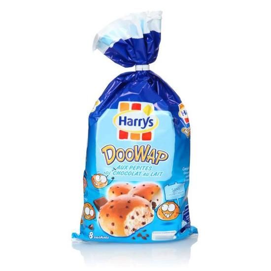 DooWap pépites chocolait sans additif.Ingrédients : Farine de blé 46%, eau, pépites de chocolat au lait 13,8% (sucre, lait en poudre, beurre de cacao, pâte...