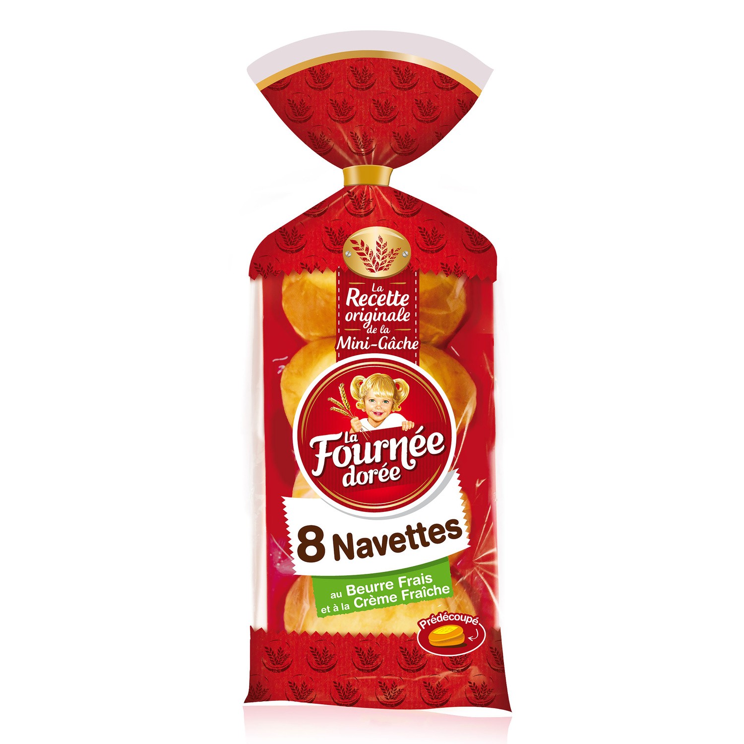 Navettes au beurre frais et à la crème fraîche.Ingrédients : Farine de blé, sucre, beurre frais 11%, œufs entiers frais, crème fraîche 4,5%, blancs d’œufs...