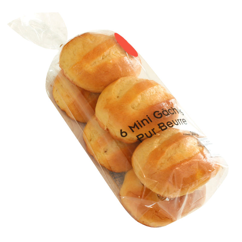 6 Mini Gâches Pur Beurre.Ingrédients : Farine de _blé_ (_gluten_), _œufs_ frais, sucre, _beurre_ 12,6 %, _crème_ fraîche 6,7 %, levain (farine de _blé_, eau),...