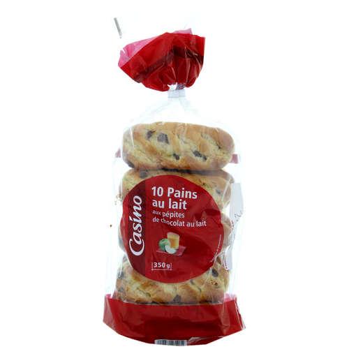10 pains au lait aux pépites de chocolat au lait et aux oeufs frais.Ingrédients : Farine de _blé_ 41,8% - pépites de chocolat au _lait_...
