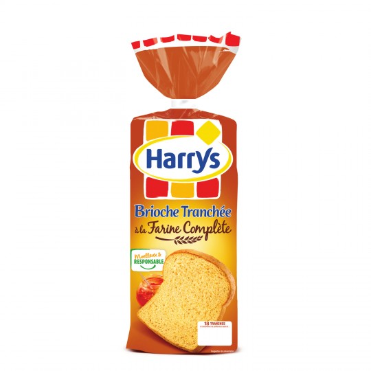 Brioche Tranchée à la Farine Complète.Ingrédients : Farine complète de blé 26%, farine de blé, eau, oeufs frais 9,4%, sucre, sirop de glucose-fructose, beurre pâtissier,...