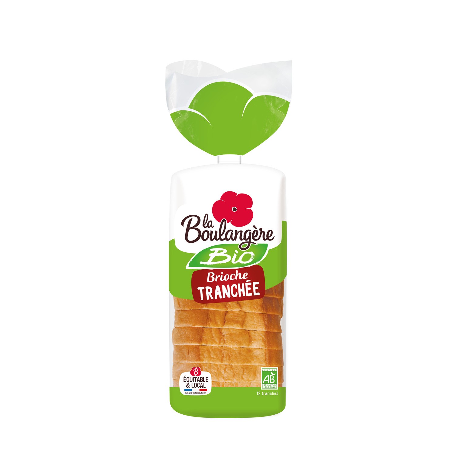 Brioche tranchée Bio.Ingrédients : Farine de _blé_*/** 55%, _œufs_ entiers*/** 14%, sucre roux*, huile de colza*, levain* (eau, levures, farines de _seigle_* et de _blé_*...