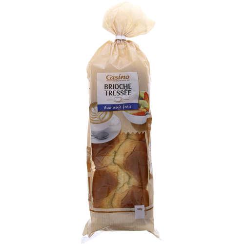 Brioche tressée aux oeufs frais.Ingrédients : Farine de blé-aeafs frais 15,6% - sucre-beurre concentré-hulle de colza - eau - rham-levure - sel - émalsifiants: mono-et...