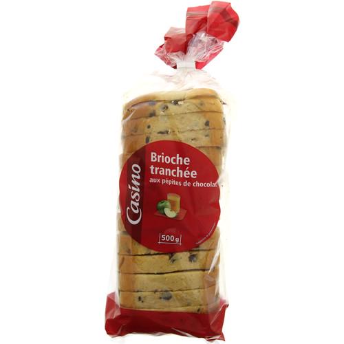Brioche tranchée aux pépites de chocolat.Ingrédients : Farine de _blé_ - pépites de chocolat 10% [sucre - pâte de cacao - beurre de cacao -...